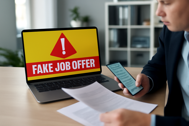 Krytycznie oceniaj wszelkie oferty „łatwego zarobku”. Jeśli wakans obiecuje dużo pieniędzy za proste czynności, wymaga pilnej decyzji lub żąda dziwnych danych — to czerwony sztandar.